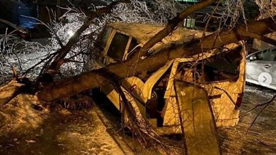 На Пушкинской, 52 деревья упали на припаркованные машины.