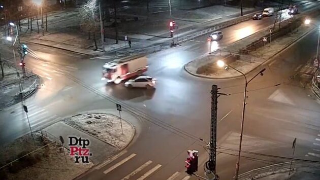 Вчера вечером, 25 ноября, в Петрозаводске произошло ДТП с участием легкового и пожарного автомобиля. На пересечении Октябрьского проспекта и улицы Московской водитель легкового автомобиля на пропустил пожарный автомобиль с включенными спецсигналами. Пожарный автомобиль двигался по Октябрьскому проспекту. В это же время легковой автомобиль выезжал на перекресток на разрешающий сигнал светофора по улице Московская. Столкновение произошло в 20:26, попало на видеокамеру компании «Ситилинк» и было опубликовано в паблике «ДТП ПТЗ и Карелии». Как видно по кадрам, пожарной машине столкновение не принесло видимых повреждений и даже не притормозило ее. А вот легковой автомобиль значительно пострадал.