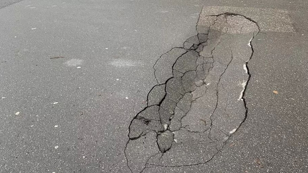 В Калининграде на выезде с улицы Мусоргского провалился асфальт