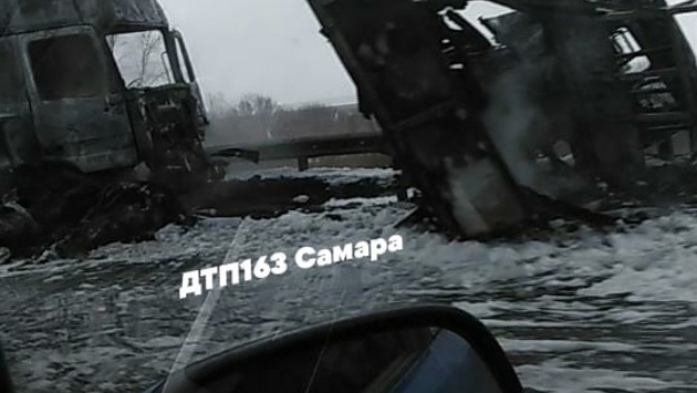 Еще один житель региона пострадал. Сегодня, 29 ноября, на трассе М5 "Урал" в Сергиевском районе произошло смертельное ДТП. В 14:48 на пульт сотрудников регионального МЧС поступило сообщение о лобовом столкновении двух большегрузов. После удара они воспламенились. Известно, что в результате аварии погибли три человека и ещё один пострадал. Все обстоятельства произошедшего устанавливают специалисты. Фото: "ДТП 163 Самара"