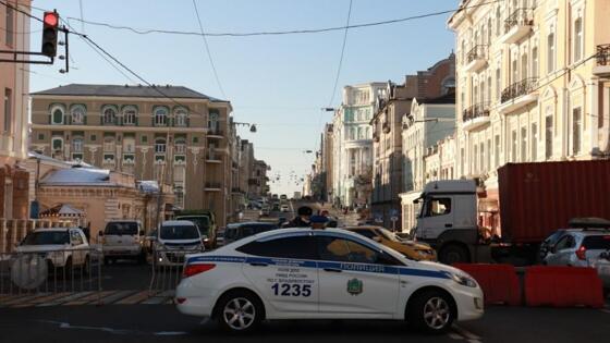 Уже не первый день движение транспорта во Владивостоке по улице Светланской от поворота на Лазо до остановки «ДВГТУ» и по Корабельной набережной от улицы Петра Великого ограничивается в связи с падением льда с верхушек вант на Золотом мосту.