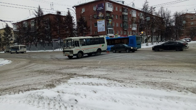 Маршрутка затруднила проезд на кемеровском перекрестке