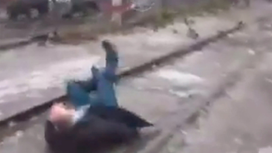 Неизвестный напал на украинскую журналистку и свалился в лужу