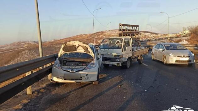 «Не заметил»: во Владивостоке на объездной трассе грузовик устроил ДТП