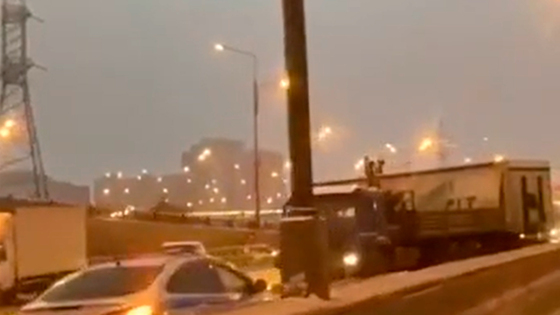 На Московской кольцевой автомобильной дороге (МКАД) столкнулись два грузовика, сообщает ТАСС. Авария попала на видео.