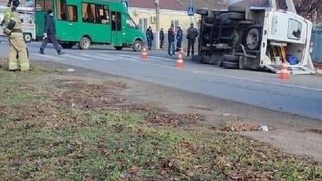 В станице Каневской в результате аварии перевернулась машина "скорой"