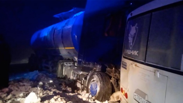 Появились первые фото с места столкновения автобуса и грузовика под Новосибирском