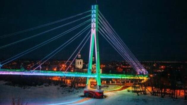 Уже завтра, 31 декабря, мост Влюбленных в Тюмени засияет новогодними огнями. Он оснащен современной осветительной установкой, которая позволяет добиваться более 200 оттенков.