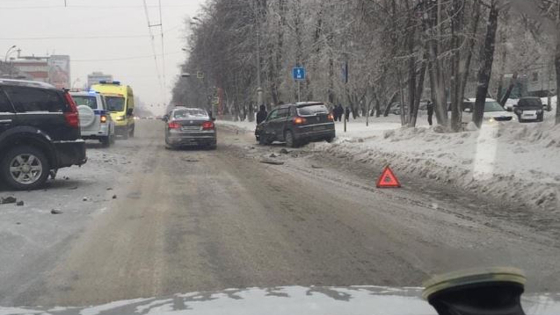В областной столице два автомобиля столкнулись на оживленном проспекте. В результате оказались повреждены обе машины, одну из них вынесло с дороги.