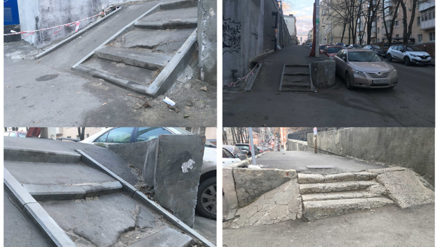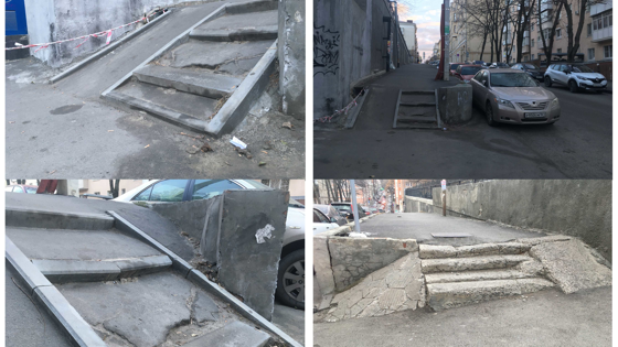 Ростовская область, 30 декабря 2020. DON24.RU. Горожане просят отремонтировать лестницу в центре Ростова. Обращение размещено на портале «Благоустройство города». Лестница разрушилась на тротуаре в переулке Островского неподалеку от больницы № 8. Кроме того, по мнению горожанина, сооружение было построено неправильно: ступени находятся под углом. Это делает лестницу травмоопасной не только в гололед, но и в сухую погоду, подчеркнул автор обращения. «Этот тротуар как раз единственный на пути к больнице №8. Сейчас им трудно пользоваться даже здоровым людям. С другой стороны, рядом с входом в больницу, лестница также разрушена и очень опасна во время гололеда», - пояснил ростовчанин.