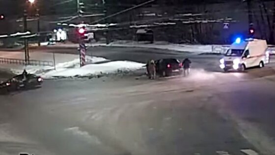 Практически через несколько секунд к месту ДТП подъехала скорая. Рождественское утро в Петрозаводске было омрачено аварией на перекрестке улиц Правды, Лыжной и Ключевского шоссе. Схема ДТП традиционная: водитель авто, которое двигалось с Правды, не пропустил при повороте налево машину, которая спускалась по Лыжной. Произошло столкновение. Примечательно, что буквально через несколько секунд после аварии подъехал автомобиль скорой, который, видимо, случайно оказался в этом месте. Впрочем, судя по видео, в аварии никто серьезно не пострадал. Все пассажиры и водители вышли из машин. Видеокамера проекта «Мой город» от компьютерной сети Сампо.ру запечатлела момент ДТП. Ролик опубликован на сайте «ДТП Петрозаводска и Карелии».