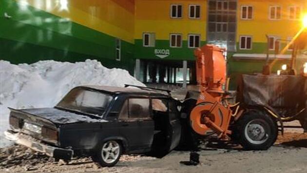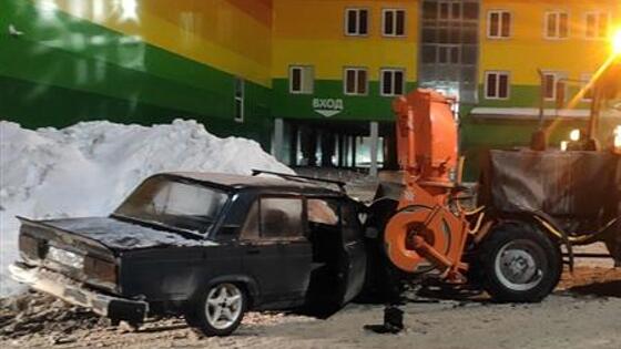 В Самаре около Агропарка легковушка въехала в трактор-снегоуборщик