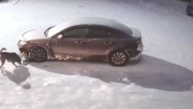 В зимнее время на дорогах происходит большое количество ДТП. Однако, не всегда можно увидеть аварию с участием собак.