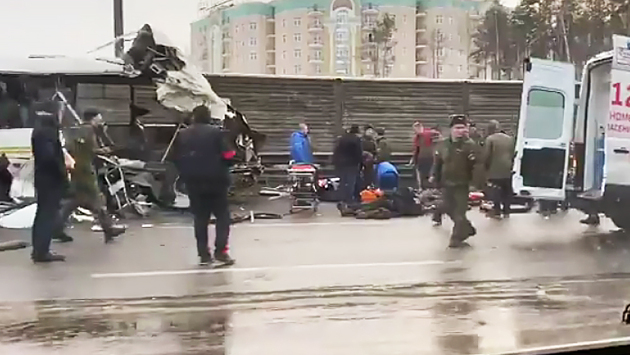 Очевидец рассказал в эфире радиостанции «Говорит Москва», что «где-то 4-5 автобусов с курсантами ехало». По его словам, с ними столкнулся самосвал.
