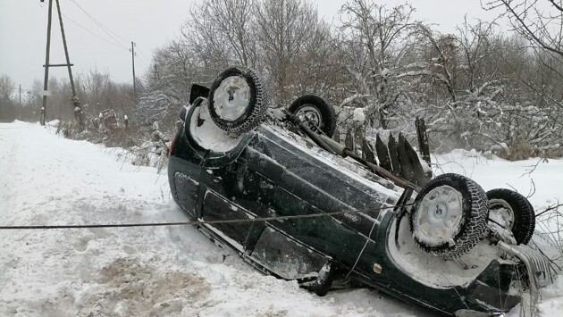Автомобиль, который двигался по встречке, занесло на дороге. Транспортное средство перевернулось и вылетело в кювет.