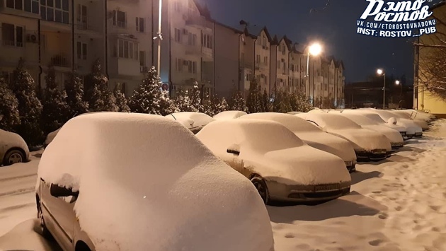 Ростов засыпало снегом: утром в понедельник город замер в пробках