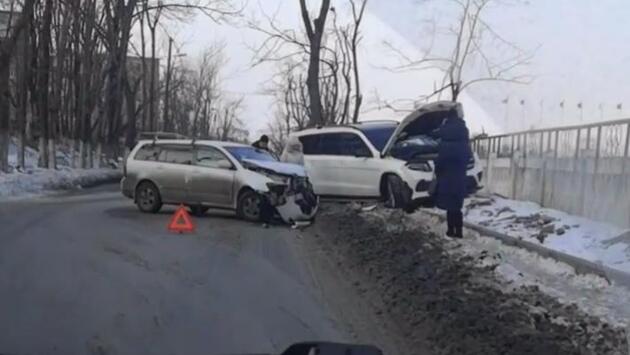 Во Владивостоке произошло ДТП с участием иномарок, сообщает PRIMPRESS со ссылкой на Instagram-сообщество dpskontrol125rus. Это случилось в районе улицы Печорской недалеко от ЗАГСа.