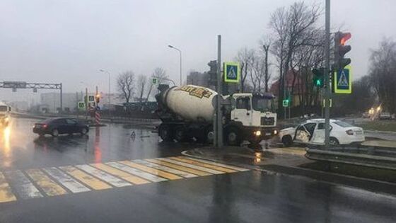 В аварии с бетономешалкой на Ялтинской пострадали водитель и пассажир легковушки