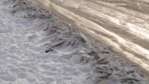 Тротуар превратился в каток на ул. Николая Островского в Чите