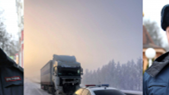 Старшие инспекторы ДПС Кирилл Терешин и Дмитрий Тарасов оказали помощь дальнобойщику, автомобиль которого заглох в сильные морозы