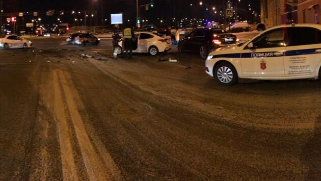 В Санкт-Петербурге на пересечении Обводного канала и Кременчугский улице столкнулись несколько машин, сообщает «ДТП и ЧП Санкт-Петербург». https://chp-msk.ru/wp-content/uploads/2021/02/1-40.mp4 Авария произошла вечером в субботу. Столкнулись три иномарки Хендай, Мерседес, Миникупер. Момент столкновения попал на записи камер видеонаблюдения, которые оказались в распоряжении РЕН ТВ. На кадрах видно, как одна из машин буквально вылетает на перекресток и сносит вторую иномарку, которую откидывает в сторону на несколько метров. При этом видно, как она цепляет за собой соседнюю машину. На место оперативно приехала скорая помощь. Сообщается, что водитель одной из машин не смог выйти наружу, так как его зажало сплющенной от удара дверью. Пострадавшим оказали помощь медики. Информации о погибших нет. По сообщению очевидцев, во время аварии были задеты еще три машины. Причины ДТП выясняются, сообщается, что в день аварии на дорогах был гололед.