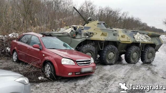 БТР Росгвардии протаранил легковой автомобиль под Новочеркасском. В Сети появились фото с места столкновения.