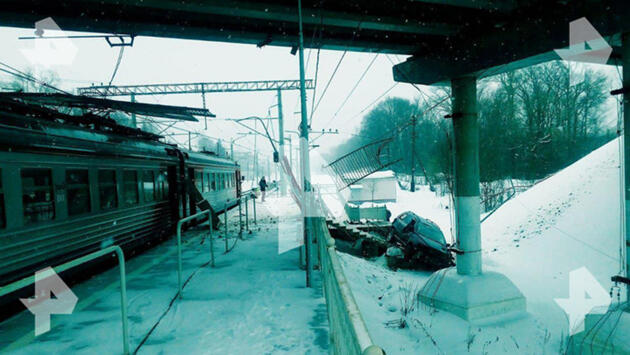ВИДЕО: Кадры с места падения автомобиля у ж/д в Подмосковье