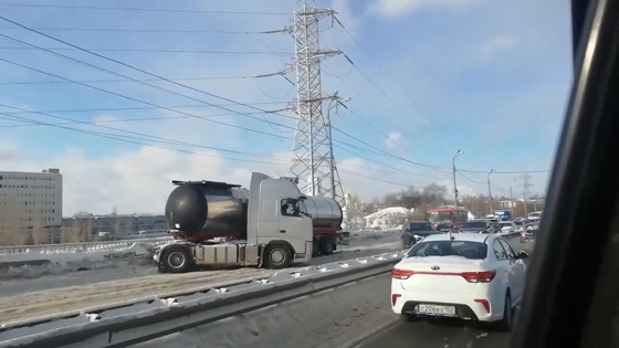 Бензовоз зацепил отбойник на подъеме на Мызинский мост со стороны улицы Новикова-Прибоя днем 15 февраля и создал пробку, перекрыв две полосы движения. Видео с места происшествия опубликовал очевидец в паблике «Регион-52 | Нижний Новгород» в социальной сети «ВКонтакте».