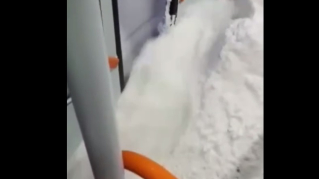 Жители Новосибирска стали свидетелями «снежного фонтана» в салоне трамвая №16. Двери транспорта не смогли закрыться из-за гигантских сугробов на остановках. В итоге во время движения трамвая снежные массы фонтаном хлынули салон.
