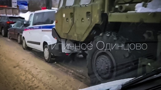 В Одинцовском районе Подмосковья столкнулись два легковых автомобиля, гражданский «Камаз», а также микроавтобус военной автоинспекции и передвижная огневая установка системы С-400 «Триумф». В результате ДТП две легковушки и микроавтобус полицейского сопровождения оказались зажаты между гражданским самосвалом и пусковой установкой.