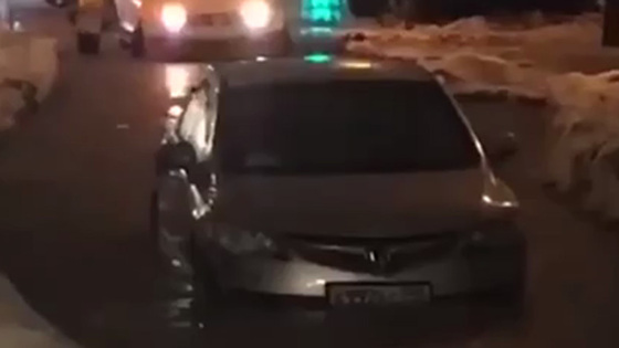 В растаявшем снеге в Москве утонул легковой автомобиль. Кадры инцидента опубликовал Telegram-канал «Новости Москвы».
