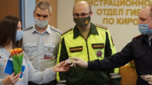 В Кировской области автоинспекторы совместно с сотрудниками военной автомобильной инспекции поздравили автоледи, получивших водительские удостоверения