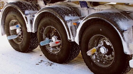 Зачем дальнобойщики крепят на колеса пластиковые бутылки