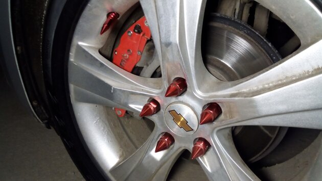 Декоративные болты. Немало машин у современных автовладельцев имеют нестандартный вид колесных дисков, а вернее, их креплений. Болты и гайки стандартной конструкции заменяются на однозначно нестандартные аналоги интересной формы, напоминающие или сильно заостренные пики, или же пулевые наконечники.