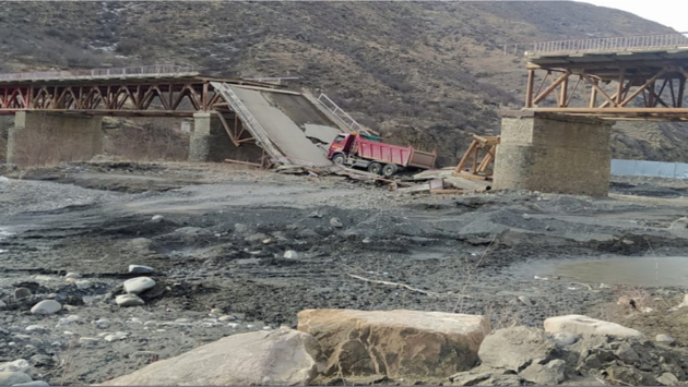 Мост с проезжавшим по нему грузовиком обрушился в Дагестане