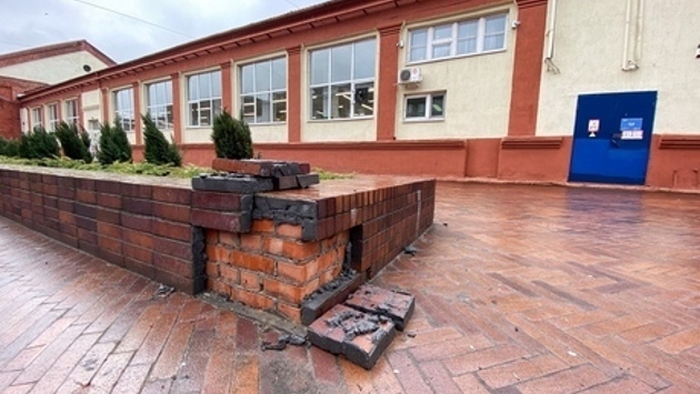 Облицовка клумб в нескольких местах начала отваливаться. Клинкерный кирпич обрушился вместе с цементом. Куски камней лежат вдоль тротуаров и на скамейках.