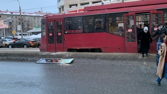 В Казани у переполненного трамвая отвалилась дверь