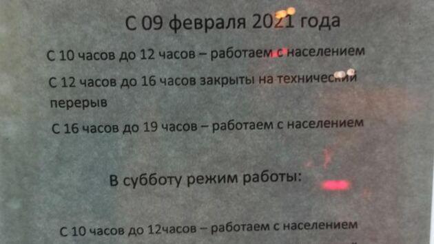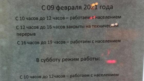 Так, выяснилось, что в некоторых отделениях работа с населением осуществляется только с 10:00 до 12:00 и с 16:00 до 19:00, в остальное время помещение "закрыто на технический перерыв".