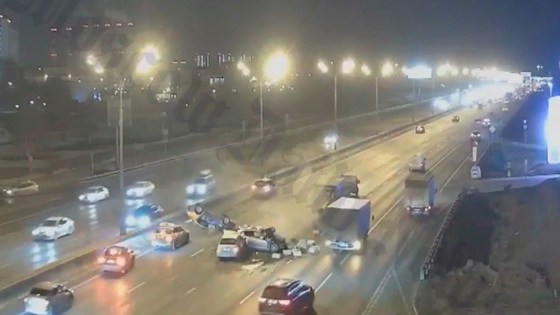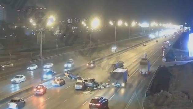 Как уточняет телеканал РЕН ТВ, «бойня легковушек» произошла в ночь на пятницу, 26 марта, неподалеку от района Строгино. В результате пострадали два человека.