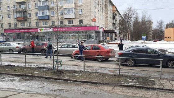 Смотрим видео о том, как собрался этот паровозик. Сегодня в 13 часов сразу пять автомобилей попали в одно ДТП на улице Мерецкова. А все потому, что водитель красной легковушки, предположительно марки «Шевроле Авео» очень куда-то торопился. Он слишком разогнался, когда ехал со стороны моста и перед препятствием буквально заметался то вправо, то влево. И вот печальный итог. Никто не пострадал, но в день смеха всем участникам аварии не до смеха. Инцидент попал на камеры проекта «Мой город» от Сампо.Ру.