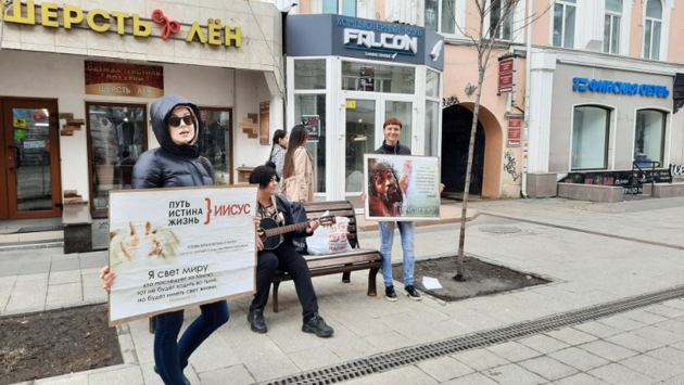 Сегодня, 3 апреля, на проспекте Кирова в Саратове была замечена группа женщин с плакатами, исполняющих под гитару песни духовного содержания. В руках у двоих из них были плакаты«Пожалуйста, не иди в ад» и «Путь, истина, жизнь - Иисус».