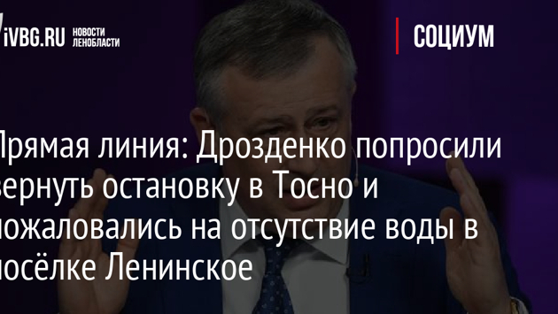 Прямая линия: Дрозденко попросили вернуть остановку в Тосно и пожаловались на отсутствие воды в посёлке Ленинское