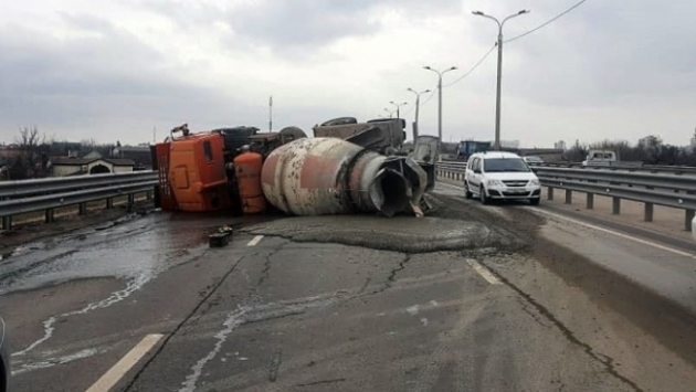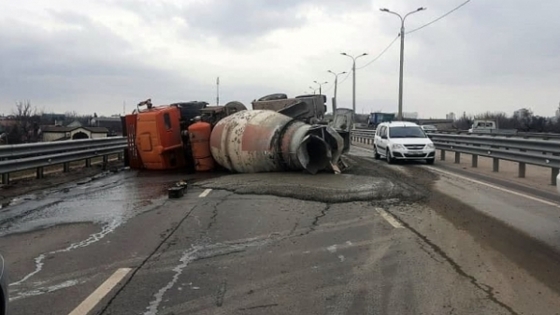 На 3-й Продольной магистрали в Волгограде опрокинулась бетономешалка