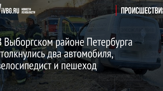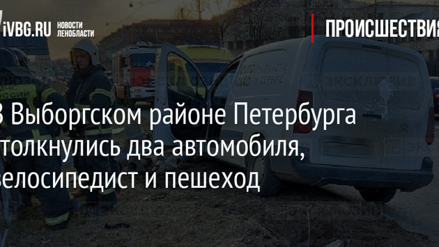 В Выборгском районе Петербурга столкнулись два автомобиля, велосипедист и пешеход