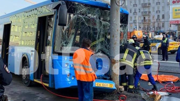 В центре Москвы автобус с пассажирами врезался в фонарный столб