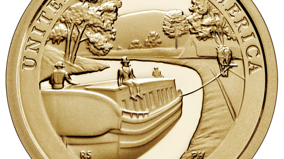 Канал Эри был построен в штате Нью-Йорк в начале XIX века. Он играл и играет важную транспортную и логистическую роль, через реку Гудзон связывает систему Великих озер с Атлантическим океаном. Благодаря его созданию значительно снизилось время в пути для перевозки грузов, что в конечном счете привело к росту торговли. Именно канал Эри изобразили на монете номиналом 1 доллар серии, посвященной инновациям и штату Нью-Йорк.