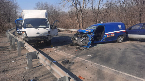 21 апреля во Владивостоке произошло ДТП по вине 71-летнего водителя почтового фургона, сообщает ИА DEITA.RU со ссылкой на УМВД Приморья. Фургон «Lada Largus» двигался по улице Лермонтова в направлении улицы Беговой. В районе дома № 119 (возле автомойки) водитель выехал на полосу встречного движения, где врезался в грузовик «Kia Bongo III». Пострадал виновник аварии, его 47-летняя пассажирка и 35-летний водитель грузовой иномарки. Двое пострадавших получили не очень серьёзные травмы и от госпитализации отказались. А вот транспортные средства пострадали гораздо сильнее. Грузовик-почтовик, возможно, больше не будет доставлять владивостокцам посылки и бандероли. В отношении лихого водителя «Ларгуса» могут завести административное дело по части 4 статьи 12.15 – выезд на полосу встречного движения в нарушении ПДД. Ранее сообщалось об аварии с автомобилем «скорой помощи». В тот раз служебная машина оказалась в аварии не по вине своего водителя – спецтехника мчалась на вызов с включёнными маячками, когда на встречу ей вылетела «Toyota Aqua», протаранив автомобиль медиков. Инцидент произошёл 16 апреля на улице Спортивной.