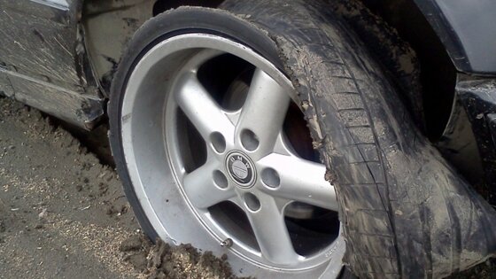 Чаще всего повреждения обоих колес возникают при ударе на ямах. Шина лопается и моментально выпускает наружу воздух. Если автомобиль в это время движется на высокой скорости, есть вероятность разбортировки покрышки. Как только водитель пытается затормозить, шина соскакивает с обода. В таком положении автомобиль ведет в сторону, что создает риск возникновения ДТП.