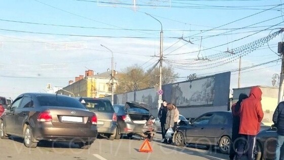 Столкнувшиеся машины перегородили две полосы на центральной рязанской улице вечером в пятницу
