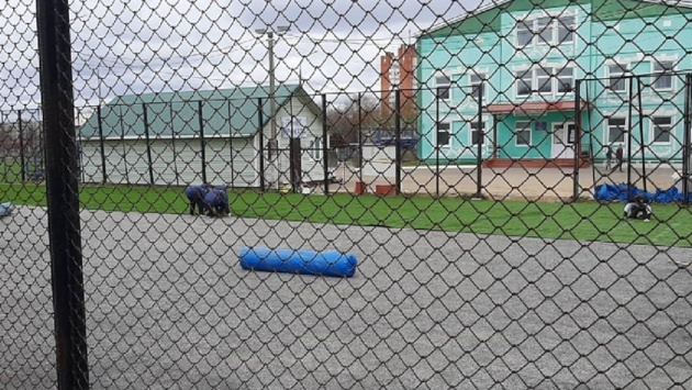 Специалисты приступили к укладке нового покрытия на мини-футбольной площадке в Вороновском
